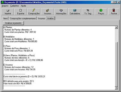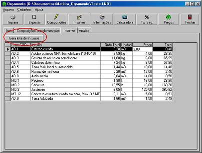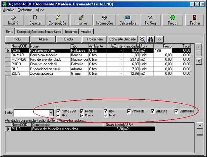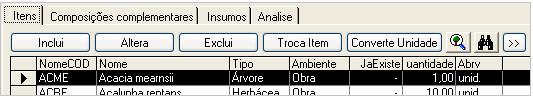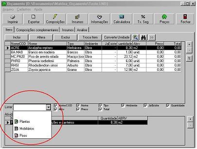En "Archivo", puede controlar algunas funciones básicas, como Archivo Nuevo, Abrir Existente, Imprimir y Convertir un archivo presupuestario realizado en el programa 2002 al presupuesto en la versión 2006. Una nota importante es que, en caso de que el sistema aún no tenga en la versión 2006, una planta registrada por usted en la versión 2002, el sistema abrirá una pantalla de inclusión rápida para esa especie.