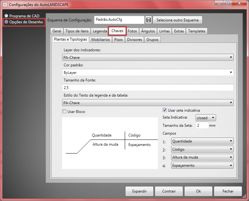 El AutoLANDSCAPE posee un sistema de claves de identificación que permite insertar, de forma rápida, la identificación del item seleccionado.