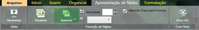 Tendo mais de uma página, selecione uma delas e aplique os efeitos desejados. No final, será possível gerar um vídeo em AVI, que possibilita a apresentação em aparelhos de DVD.